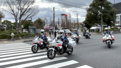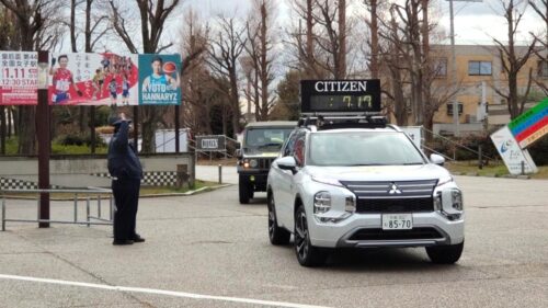 京都府警の警察車両やNHKの放送車両、監察やタイマーなどの競技関係車両が隊列を組み、本番と同じ12時30分にスタート。